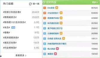 最近娱乐圈可是热闹非凡啊!各大平台的热搜榜上,那些明星的八卦新闻简直让人停不下来。今天,就让我带你一起看看那些让人津津乐道的娱乐吃瓜热搜榜排名吧!